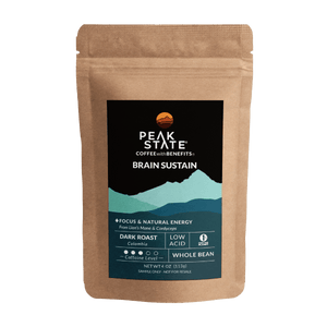 Our Brain Sustain dark roast is filled with notes of rich dark chocolate.