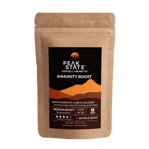 Our Immunity Boost medium roast is filled with notes of dark chocolate and sweet grape.